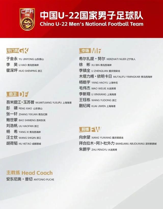 从名单来看,9人入选过国足、7人有过出场经历,8名球员打了年初的U20亚洲杯,在今年的联赛也有不错的表现。本报整理了截至第22轮中超和第21轮中甲的数据,可以看出,很多入选的球员在联赛已经坐稳了主力位置,如王钰栋、刘浩帆、向余望等,整体实力和大赛经验都有所提高。